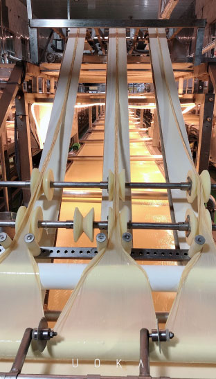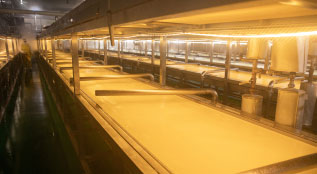 豆黃金是一家采用空氣凈化設備、全自動標準化的企業。豆黃金也是一家采用日本八沖八洗工藝的企業。生產完腐竹后,用山泉水每天沖洗管道設備地面4個小時。豆黃金天然鮮腐竹只揭取豆漿前三層油皮,剩下的豆漿排出售賣給養殖戶。豆黃金采用智能化全自動生產線。德國超微粒粉碎技術:可以使大豆的蛋白質分離達到有效利用,小分子蛋白制作腐竹,口感細膩,營養易吸收。130度高溫煮漿(家庭及作坊是做不到的) 運用到蒸煮豆漿中迅速有效的去除了大豆胰蛋白酶抑制素及皂昔對身體的不利影響物質,標準化生產工藝更科學。