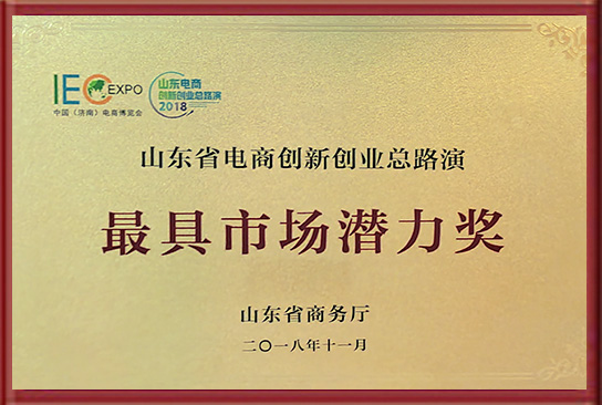 《山東省電商創新創業總路演最具市場潛力獎》