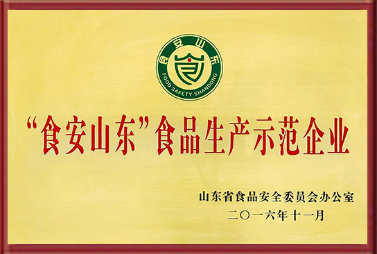 《食安山東食品生產示范企業》